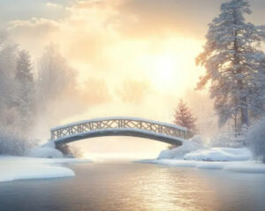 On this journey use your imagination to experience three bridges, or stages, in the process of shifting into higher frequencies. The first bridge you will experience is the Bridge of Silence. Imagine this bridge however suits you best. It could be a bridge over still water in a snowy landscape where the snow blankets sound in peaceful tranquility. Allow the silence and peace you experience on this bridge to calm you and settle you into quiet stillness. Once again quiet your mind and emotions, and allow your body to fully relax, breathing in a steady rhythm. Take a few minutes here on this bridge, and note your experience here.